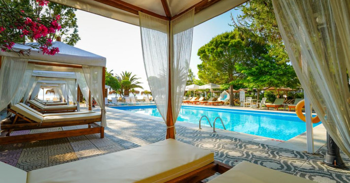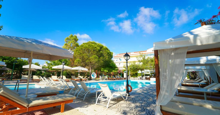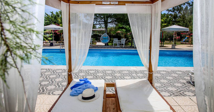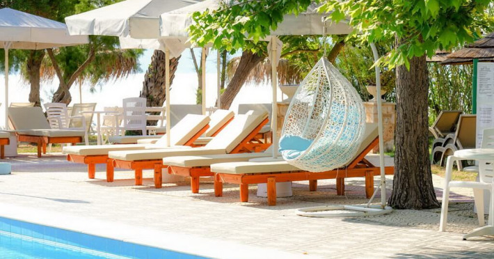 The Hotel offers to all its guests great quality facilities & services. Some of them include: a swimming pool surrounded by sun loungers & umbrellas, outdoor patio, a beautiful garden, ground chess, table tennis, a bar and breakfast.