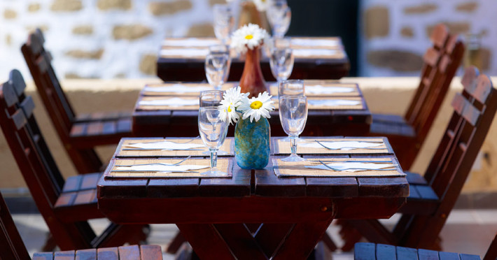 Sun Beach Lindos pune la dispoziția oaspeților un restaurant. Masa poate fi servită atât în interior, cît si în aer liber, pe terasă, în funcție de vreme. Oaspeţii pot avea diverse băuturi răcoritoare sau alcoolice la bar.