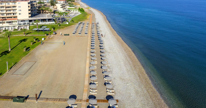The Sun beach resort is a magnificent 4* hotel located in the popular resort of Ialyssos (Trianta area), just a few kilometres away from Rhodes town and itsâ International airport (10 minutes drive on either side). The resort consists of 2 renovated buildings, one situated right on the sandy and shingle beach of Ialyssos with the second one just 30 meters away, surrounded by 35000 sqm of land with stunning gardens stretching all the way down to the sea. Sun Beach resort offers a fun and relaxing holiday environment with an impressive range of accommodation, fine cuisine amp; bars and a high standard of warm and personal service representing the ideal choice for couples, individuals and families that seek affordable quality. The resort is suitable for people with walking difficulties and wheelchair users. The Sun Beach Resort consists of 27 standard guestrooms, 20 superior guestrooms, 18 family rooms, 88 studios, 40 superior studios and 112 suite Apartments (3 suitable for the less mobile), all of which renovated and comfortably furnished with a balcony, a private bath/shower combination, safe deposit box, hairdryer, telephone, Internet access (chargeable extra), satellite TV, radios and air-conditioning in operation from 01/06-30/09. Studios and apartments are equipped with kitchenettes featuring cooking rings, microwaves, kettles and toasters. The hotel also features an extensive program for children (with enhanced safety measures) including dedicated Kids Suits equipped with Sony play station games, a mini club and playground as well as entertainment for both adults and children of all ages. Couples and individuals can set back by the pools and relax on the numerous sun beds with the company of a refreshing cocktail or fresh juice, or through the various sport facilities including a five-a-side football court, tennis, table tennis and beach volley courts or even practice their surfing skills at the windsurfing academy adjacent to the hotel. Fine dining to the local sea side restaurants, cozy bars and a number of local shops add up on the overall experience ensuring a unique leisure experience. Key Distances: 5 â 10 minutes walking distance from Ialyssos centre, 10 minutes drive from Rhodes town with its magnificent medieval city, 10 minutes drive from Diagoras airport Nearby Key attractions: Filerimos Monastery with its imposing cross (5 km / 3 miles), Temple of Apollo (6km, 3.7 miles), Ancient Olympic Stadium (6km, 3.7 miles), Rhodes (new amp; old) Town (8 km, 5 miles), Aquarium (9 km / 5.5 miles), Archaeological Museum of Rhodes (9 km / 5.5 miles), Municipal Art Gallery (9 km / 5.5 miles), Municipal Art Gallery (9 km / 5.5 miles), Valley of Butterflies (20 km, 12 miles), Ancient city of Kameiros (28 km / 18 miles), Village and acropolis of Lindos (50 km / 32 miles), Castle of Monolithos (65 km / 40 miles), Prassonisi Cape (Green Island, 80 km / 50 miles). Things to do in Ialyssos: Watersports (especially for windsurfing), Shopping, eating out - sea side restaurants, sightseeing in nearby areas, modest nightlife (bars and cafés) nbsp;Datorita dinamicitatii domeniului disponibilitatea ofertelor se modifica de la un moment la altul. De aceea ofertele sunt valabile in limita locurilor disponibile. Agentia nu este responsabila pentru eventualele neconcordante care pot aparea intre informatiile privind tarifele si alte detalii din site si informatiile primite in agentie. In aceste cazuri vor avea prioritate, intotdeauna, informatiile primite in agentie.