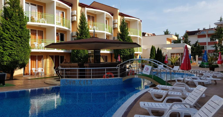 Amplasată în Sunny Beach, la 500 m de plaja Sunny, Sun City este o proprietate de 3 stele care oferă o piscină în aer liber, terasă cu șezlonguri și umbrele de soare și unități de cazare cu aer condiționat. Proprietatea are servicii de recepție cu program non - stop și închirieri auto. Se oferă acces gratuit la internet Wi-fi în spațiile publice. Parcarea este disponibilă la proprietate gratuit.