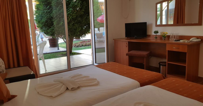 În camere există baie cu duș. Camerele luminoase de la Sun City sunt dotate cu aer condiționat, Tv și seif. Oaspeții au acces gratuit la serviciul Wi-fi în camere. Curățenia in cameră se face zilnic. Proprietatea oferă camere pentru familie cu o suprafață mai mare și un număr mai mare de paturi față de cele standard. Se pot rezerva de asemenea camere pentru nefumători.