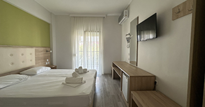 Camerele hotelului sunt frumos amenajate si dotate cu frigider, TV, seif, grup sanitar cu dus, balcon, AC inclus.