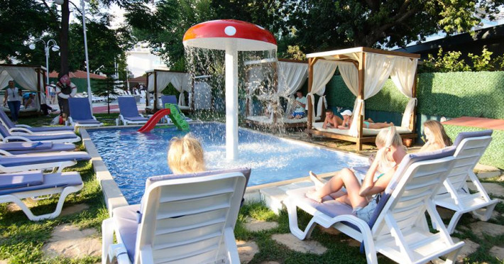 Copiii se pot distra la piscina special amenajată pentru ei.