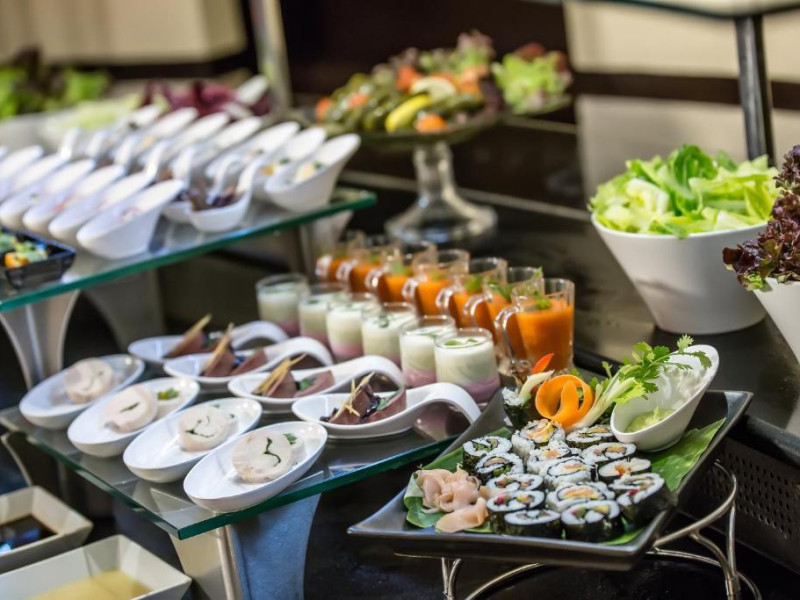 Restaurantul Anwar servește preparate internaționale. Oaspeții pot savura o bere la Two Guineas, un pub tradițional englezesc.