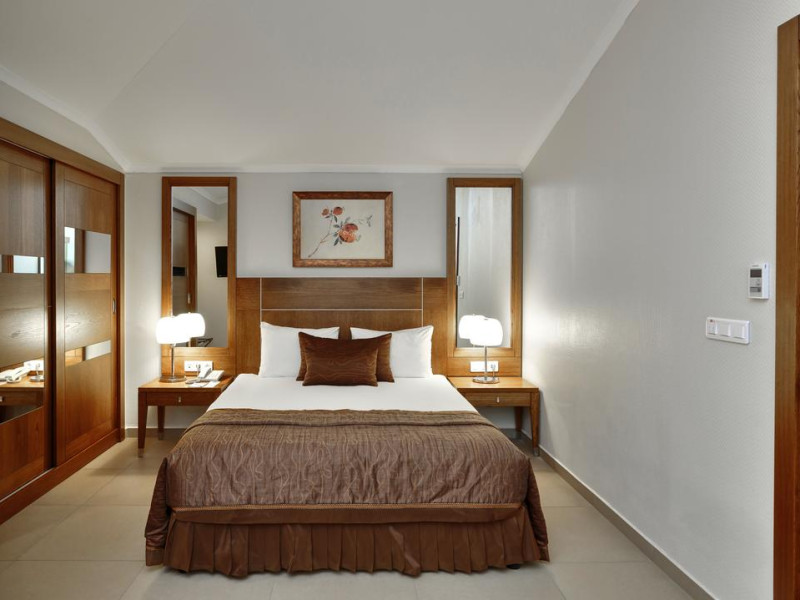 Camerele sunt moderne si spatioase, echipate cu aer conditionat, minibar, TV cu canale de muzica, seif si acces Wi-Fi. Fiecare camera dispune de baie privata cu dus, uscator de par si articole de toaleta, iar balconul ofera o vedere placuta spre gradina sau mare.