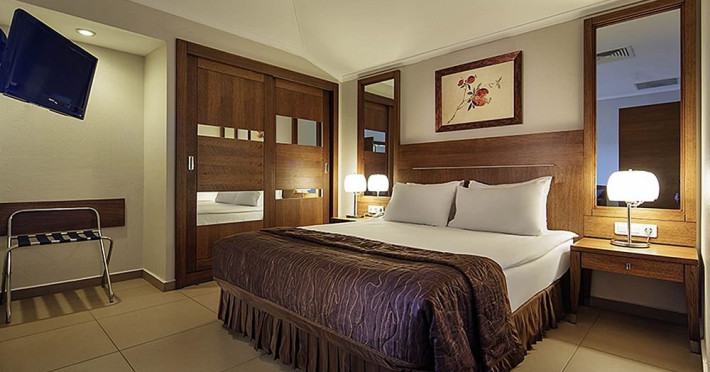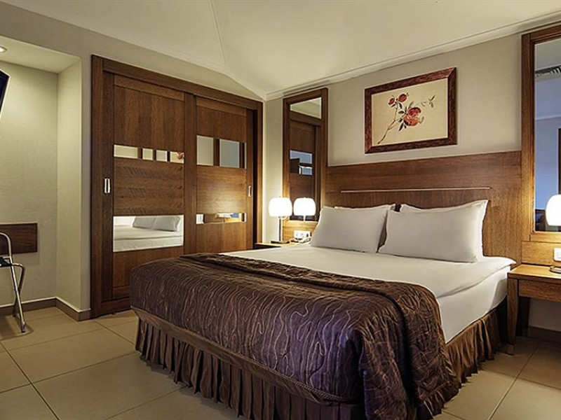 La HOTEL SUNIS ELITA BEACH RESORT & SPA beneficiati de camere intre 25 si 39 mp dotate cu: telefon, seif, internet wi-fi, minibar, aer conditionat, baie cu cabina de dus sau cada, uscator de par, mocheta sau gresie, balcon.