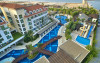Facilitati hotel: Hotelul ofera oaspetilor sai multiple facilitati: restaurant principal, 5 restaurante a la carte, 6 baruri, patiserie, 2 piscine exterioare - una cu 3 tobogane, o piscina interioara, sauna, hammam, centru fitness, aerobic, boccia, discoteca, programe de animatie, tenis de masa, darts, volei si fotbal pe plaja, meniu pentru copii la cina in restaurantul principal, teren de joaca, miniclub, animatie, minidisco, fresh-uri la micul dejun.