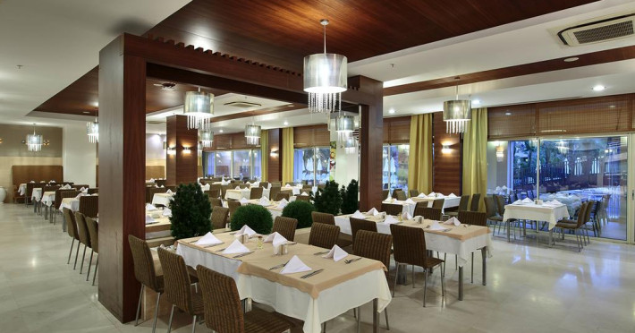Evren Beach Resort Hotel & Spa dispune de o gama variata de facilitati menite sa ofere o experienta de neuitat. Oaspetii se pot bucura de un restaurant principal cu un bufet international bogat, precum si de restaurante a la carte, care includ optiuni turcesti, italiene, mexicane si de peste. Exista mai multe baruri, inclusiv un bar pe plaja si unul in lobby, unde pot fi savurate bauturi alcoolice si non-alcoolice.