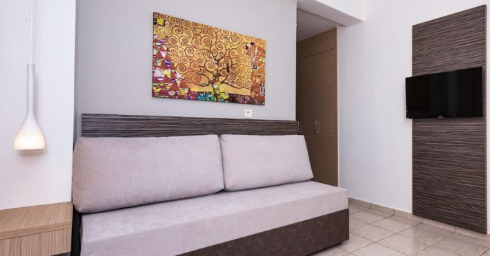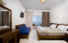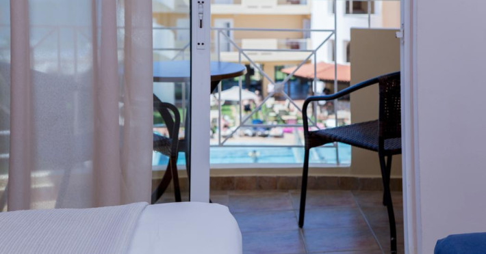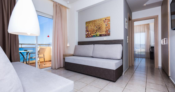 Unele camere au balcon cu vedere la mare sau la piscină. Fiecare cameră dispune de minibar și cană-fierbător. Oaspeții pot solicita serviciul de room service pentru a servi masa sau diverse băuturi. În camere există baie cu cadă sau duș ce are în dotare foehn și articole de toaletă gratuite. Camerele confortabile de la Sunny Bay Hotel au pardoseală de gresie/ marmură, aer condiționat, Tv cu canale prin satelit și seif. Oaspeții au acces gratuit la serviciul Wi-fi în camere. Curățenia in cameră se face zilnic. Toate camerele spațioase de la Sunny Bay Hotel au zonă de relaxare cu canapea, ceea ce oferă un plus de confort. Proprietatea oferă camere pentru familie cu o suprafață mai mare și un număr mai mare de paturi față de cele standard. Se pot rezerva de asemenea camere pentru nefumători.