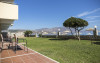 Pe plajă există șezlonguri și umbrele de plajă.