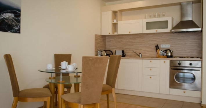 La Sunny Fort Apartments oaspeții au la dispoziție un restaurant care servește mâncare à la carte. Preparate din bucătăria internațională așteaptă să fie degustate în fiecare zi la micul dejun, prânz și cină. Masa poate fi servită atât în interior, cît si în aer liber, pe terasă, în funcție de vreme. Oaspeţii pot avea diverse băuturi răcoritoare sau alcoolice la bar. Oaspeţii îşi pot pregăti micul dejun şi alte mese şi le pot savura chiar pe balcon.