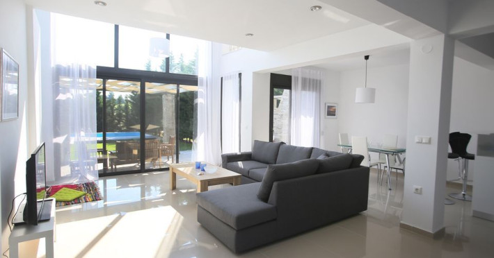 Discover Sunny Sani. There, where the air freshens the atmosphere, the green nature adorns the scenery and the crystal clear waters reflect the majestic summer sun, you will discover your supreme vacations destination.Positioned in Kassandra, the first peninsula of Halkidiki, you will find the Sunny Sani complex of Luxury Villas. The 11 classy villas that are spread across the spacious blooming complex, each with its private garden and swimming pool, have the ideal location for relaxation and privacy seekers. The nature, the view and the quietness of each villa establish it as the ideal choice for both families and friends to rediscover the real meaning of holidays.This summer, surprise your loved ones with unexpected holidays and indulge your inner needs for a peaceful mind in a villa that suits you the most…