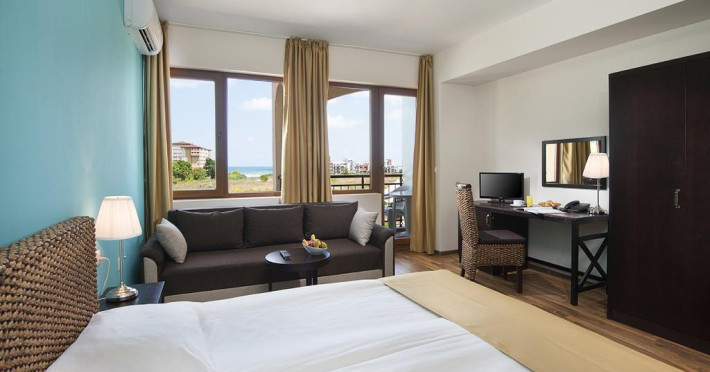 Hotelul Sunrise All Suites se află la 2 km de centrul stațiunii Obzor, la aproximativ 250 m față de plajă.