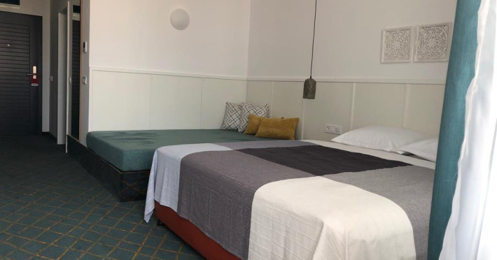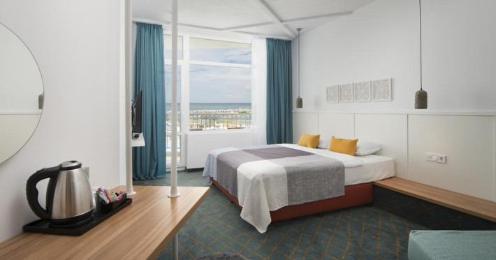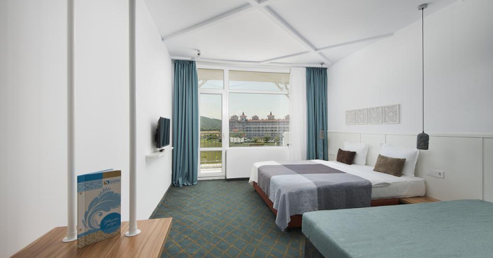 Complexul oferă oaspeților posibilitatea de cazare în camere duble (28mp) și suite junior (45 mp). Camerele dispun de 2 paturi single, 1 pat extra, baie cu duș, uscător de păr, aer condiționat, aparat pentru preparare cafea, minibar, telefon, TV satelit, seif, masă de călcat, Wi-Fi gratuit, balcon. În plus față de camerele duble, suitele junior sunt mai spațioase și au o zonă de relaxare.