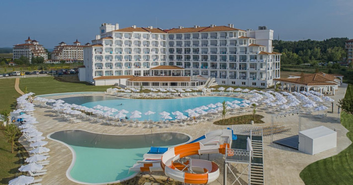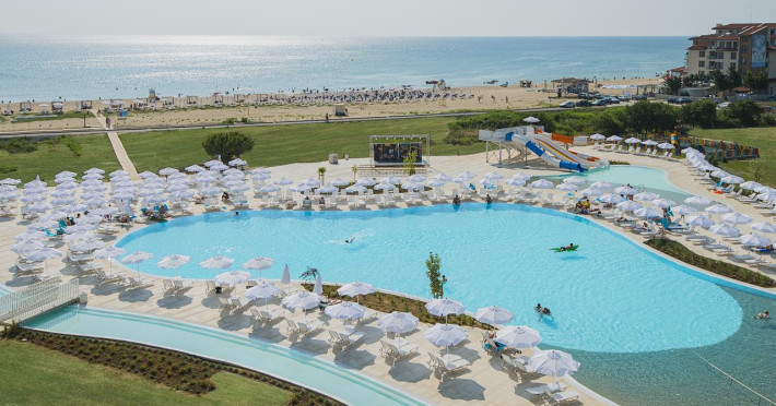 Sunrise Blue Magic Resort este situat pe plajă, la aproximativ 3 km de centrul statiunii Obzor.