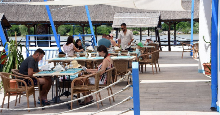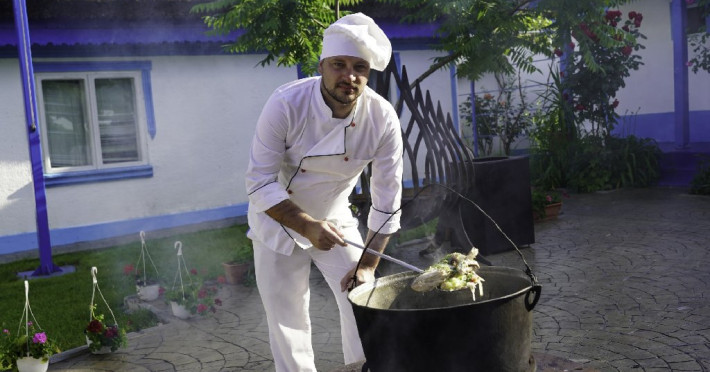Terasa si restaurantul au vedere la Dunare, decorate frumos, simplu, cozy, locul perfect pentru mic dejun si pentru celelalte mese ale zilei. Cafeaua de dimineata savurata pe ponton sau la terasa, alaturi de pescarusi, chire, randunele, este o incantare! In meniu gasiti atat preparate traditionale din peste, cat si preparate din bucataria traditionala.