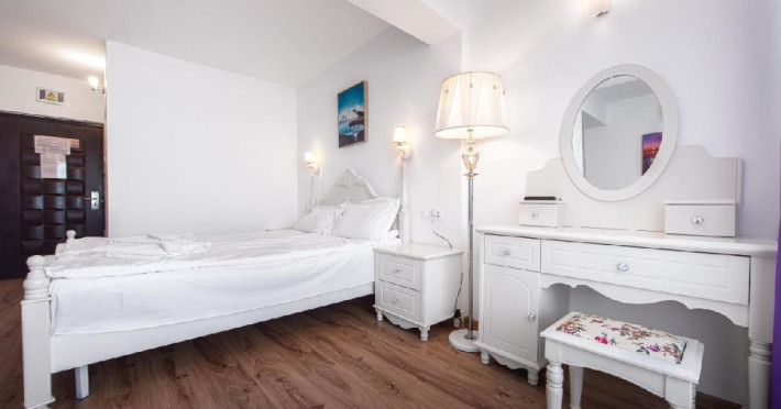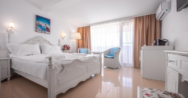 Facilitati: Hotelul dispune de 18 spatii de cazare (3 apartamente, 8 camere duble superioare, 4 camere duble standard si 3 camere single), de parcare gratuita in limita disponibilitatii, plaja privata cu acces contra cost, wifi gratuit.