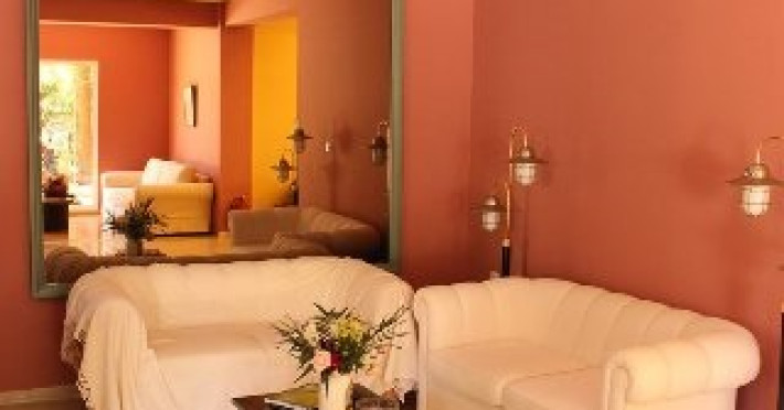 Dispune de camere single, duble, triple si apartamente, are si o terasa mare acoperita, cu vedere la lantul Anios dar si la Marea Ionică.