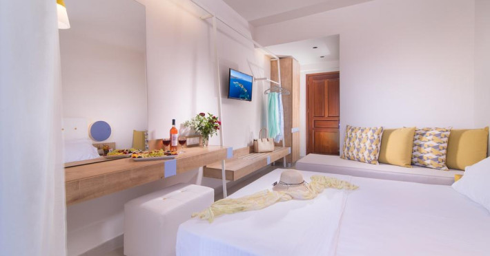 Sunt disponibile 46 camere. În camere există baie cu duș ce are în dotare foehn și articole de toaletă gratuite. Unele camere au balcon cu vedere la mare sau la grădină. Camerele confortabile de la Sunrise sunt dotate cu pardoseală de gresie/ marmură, aer condiționat, Tv și seif. Oaspeții au la dispoziție serviciul de room service pentru a servi masa sau diverse băuturi. Oaspeții au acces gratuit la serviciul Wi-fi în camere. Curățenia in cameră se face zilnic. Fiecare unitate de cazare are frigider. Proprietatea oferă camere pentru nefumători.