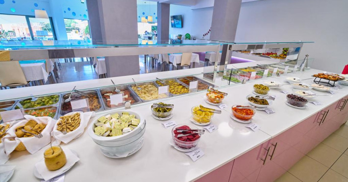 La Sunrise Village oaspeții au la dispoziție un restaurant care servește mâncare în stil bufet. Preparate din bucătăria grecească așteaptă să fie degustate în fiecare zi. Masa poate fi servită atât în interior, cît si în aer liber, pe terasă, în funcție de vreme. Oaspeţii pot avea diverse băuturi răcoritoare sau alcoolice la bar. Oaspeţii îşi pot pregăti micul dejun şi alte mese şi le pot savura chiar pe balcon. Pentru cei cu anumite nevoi de nutriție, Sunrise Village oferă meniuri pentru diete speciale.