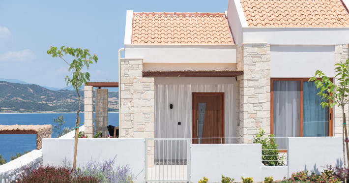 They are fully equipped and include: Bedroom, bathroom, kitchen with all the needed amenities, living room, large terrace with garden and a magnificent view of the Sigitikos gulf and the island of Ammouliani.