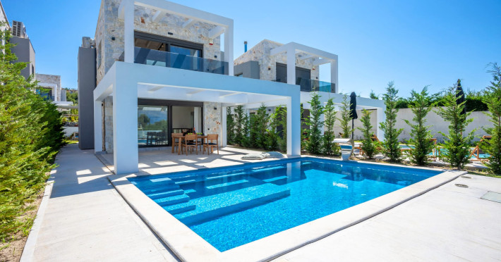 The luxurious villas are offering breathtaking sea views that stretch across the horizon. These villas are designed with contemporary elegance in mind, featuring modern furniture that combines comfort with style. Each villa is spread across three spacious floors. The outdoor area is perfect for relaxing. Whether you're soaking in the beauty of the Aegean Sea or enjoying the chic, minimalistic design of the villa, these villas offer an exceptional escape in one of Greece’s most coveted regions.