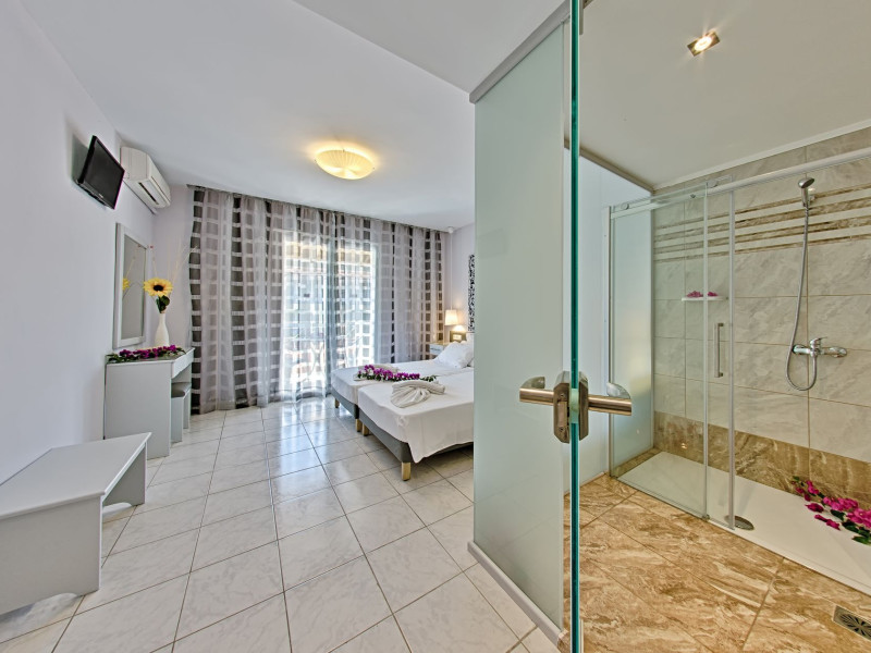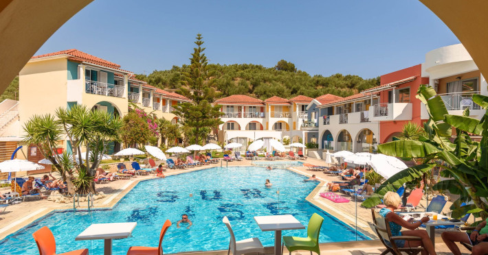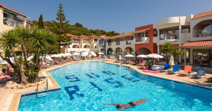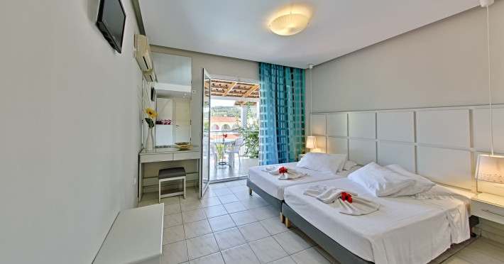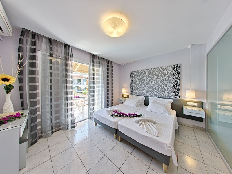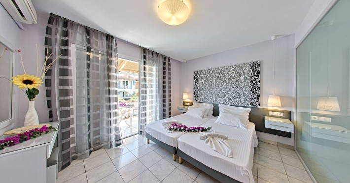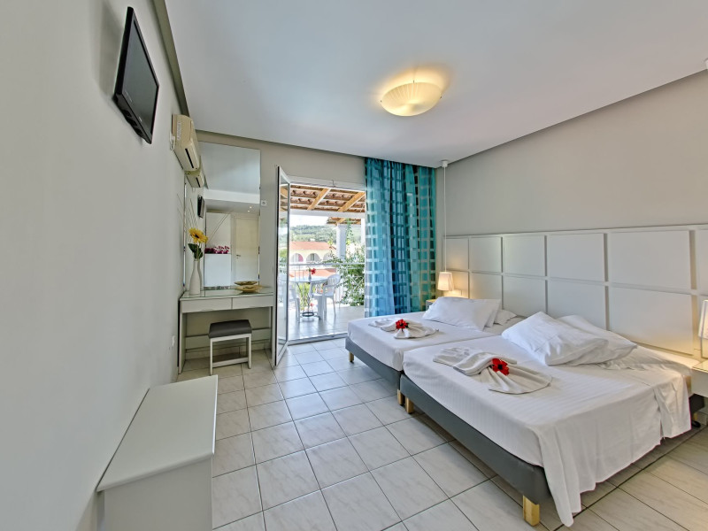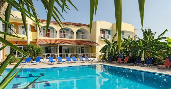Welcome to Sun Rise Hotel Small and familial hotel, that will offer you a true vacation experience... “Small and Friendly”. The Sunrise Hotel Zakynthos is located In a charming rural setting surrounded by olive groves, hills and fields. This modern hotel offers a warm and friendly atmosphere and provides free Wi-Fi access throughout the property. Tsilivi is a popular holiday resort and becomes lively in the high season while managing to retain its friendly charm. It boasts a superb beach with many facilities and gentle waters, making it ideal for families. Sunrise Hotel is just 500m from the centre of the resort, and as the sun sets Tsilivi becomes alive with an abundance of cocktail and music bars, providing you with excellent evening entertainment. Dine under the stars in one of the many restaurants and tavernas, before making your way into the resort centre to dance the night away.