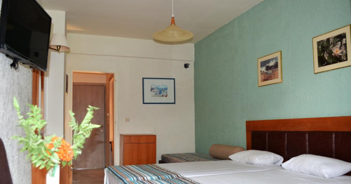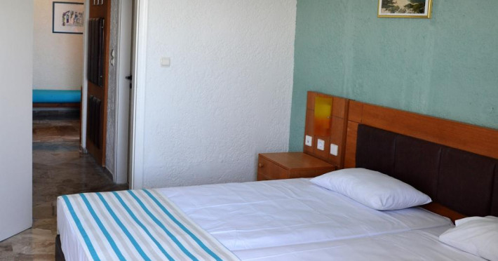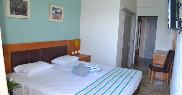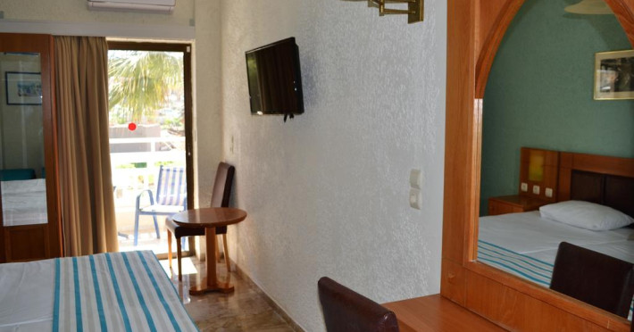 Camerele confortabile de la Sunset Beach au pardoseală de gresie/ marmură, aer condiționat, Tv cu canale prin satelit și seif. În camere există baie cu cadă sau duș prevăzută cu foehn. Unele camere au balcon cu vedere la mare sau la piscină. Toate camerele spațioase de la Sunset Beach au zonă de relaxare cu canapea, ceea ce oferă un plus de confort. Fiecare unitate de cazare are frigider. Proprietatea oferă camere pentru familie cu o suprafață mai mare și un număr mai mare de paturi față de cele standard. Se pot rezerva de asemenea camere pentru nefumători.