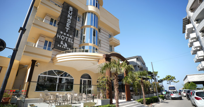 About 50 m from the hotel`s own public sandy beach and approximately 100 m from the sea lies the hotel Sunset Hotel. The nearest restaurants and bars can be reached in a few minutes on foot. The old town is around 6 km away. The nearest shops you can reach within around 6,8 km, a supermarket is just a few metres away from the hotel. There is a 24h shuttle between the hotel and the airport 24h a day. The beach is patrolled by a lifeguard and awarded a blue flag, pets are allowed. On the beach there is also a clubhouse. Here, there are sun loungers, cushions and sun umbrellas available. Cold drinks are served at the bar on the beach. There is a promenade where you can take leisurely walks. The seasonally air-conditioned, GPS-verified hotel has a 24h reception (check-in is possible around the clock), a lobby bar, Wi-Fi, internet access, a lift, a supermarket and a kiosk, cash machine, a hairdresser, a first aid kit, parking spaces (limited) as well as a TV lounge with satellite TV. In the outdoor area of the property you will find a garden as well as a supervised pool (open all year), where sun loungers, sun umbrellas and pool towels are available for free. There is also a separate children's pool with a non-swimming area. Furthermore, outside you can find a roof terrace. You can store your valuables in the safe, and your luggage in the hotel`s storage room. In addition, the hotel Sunset Hotel is video-monitored 24h a day. For very young guests, kid`s chairs, highchairs and cots can be provided. For the smallest children prams can be rented in the hotel. There is also a laundry and ironing service. Ironing equipment can also be borrowed at the hotel. For your comfort the hotel page will ensure you are looked after. If necessary, you can contact the medical centre at any time. The energy supply is 220 Volts. If you want to explore the holiday region, you can use the car rental service close to the hotel. At the reception, tickets are offered for excursions in the area. Pets like cats and dogs are allowed in the hotel (on request) . For guests on their honeymoon, the hotel has special offers such as a romantically-decorated room, personalised rooms/articles, rooms with a particularly romantic location and view, romantic dishes in the restaurant, champagne, sparkling wine, a present, a basket of fruit or flowers in the room. In your hotel, a lot of focus is placed on sustainability. This includes waste segregation in the rooms, the hotel`s own recycling bins, the provision of soap and shampoo dispensers, organic food and ecological meals, a central room air-conditioning and environmentally-friendly cleaning. That is why the hotel Sunset Hotel was also awarded a sustainability certificate. The hotel requires that all guests pay a deposit upon arrival. American Express, Euro/Master Card, Visa and EC cards are accepted as means of payment. Catering As catering services the hotel offers all-inclusive, all-inclusive light, half board, half board plus, full board, full board plus, breakfast only and self-catering. Breakfast is offered American, continental, from the buffet, à la carte or as brunch (extras on request). Lunch and dinner are also served as a set meal, à la carte or from the buffet with starters, salads and desserts (extras on request and at extra cost). Half board includes breakfast, lunch and dinner. When booking half board plus, breakfast, lunch, dinner and beverages during meals (limited) are included. All Inclusive Light includes coffee & tea, cake & pastries, beer as well as wine. When booking all-inclusive, one welcome drink and one meal in the à la carte restaurant are included. As part of the all-inclusive service, water (24h), softdrinks (24h), coffee and tea (24h), snacks (24h), cakes and pastries (24h), beer (24h) as well as wine (24h) are available at no extra charge. For the meals, there are a buffet restaurant (Italian, Mediterranean, calorie-reduced, gluten-free and vegetarian dishes) and the cafeteria, a 24h snackbar as well as a sky bar. The drinks menu of the hotel includes water, soft drinks, coffee and tea, beer and wine. A picnic bench can be used by guests for self-catering. Distances
