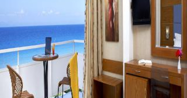 Near Stamatiadis Mineralogy and Paleontology Museum. With a stay at Sunshine Rhodes - All Inclusive in Rhodes, youll be on the beach, within a 15-minute drive of Rhodes Port and Ialyssos Beach. This 4-star property is 9.7 mi (15.6 km) from Faliraki Beach and 10.2 mi (16.4 km) from Water Park Faliraki. Make yourself at home in one of the 371 guestrooms featuring refrigerators and LCD televisions. Rooms have private furnished balconies. Wireless Internet access (surcharge) keeps you connected, and satellite programming is available for your entertainment. Bathrooms have complimentary toiletries and hair dryers. This property is all inclusive. Rates include meals and beverages at onsite dining establishments. Charges may be applied for dining at some restaurants, special dinners and dishes, some beverages, and other amenities. Satisfy your appetite with international cuisine at Dionissos Main Restaurant, one of the propertys 3 restaurants. Wind down with a drink at one of the 4 bars/lounges or 3 poolside bars. Pamper yourself with onsite massages, body treatments, and facials. After practicing your swing on the golf course, you can dip into one of the 4 outdoor swimming pools. Additional features at this property include complimentary wireless Internet access, concierge services, and babysitting (surcharge).Datorita dinamicitatii domeniului disponibilitatea ofertelor se modifica de la un moment la altul. De aceea ofertele sunt valabile in limita locurilor disponibile. Agentia nu este responsabila pentru eventualele neconcordante care pot aparea intre informatiile privind tarifele si alte detalii din site si informatiile primite in agentie. In aceste cazuri vor avea prioritate, intotdeauna, informatiile primite in agentie.