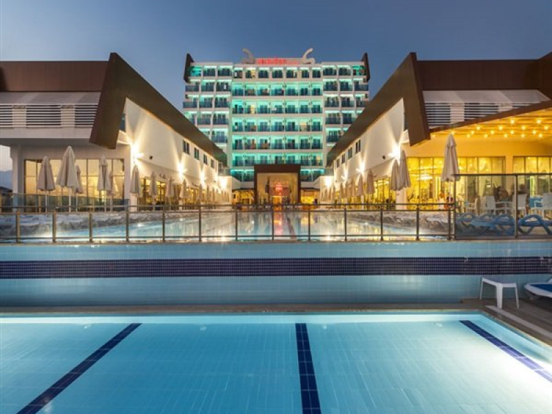 Descriere: Hotelul este situat in statiunea Alanya, la cativa pasi de mare unde ofera turistilor o zona de plaja privata iar distanta fata de centrul orasului Alanya este de doar 10 km.Localizare: Hotelul este localizat foarte aproape de plaja si la 10 km distanta de orasul Alanya. Cel mai apropiat aeroport este Gazipasa Alanya la 34 km iar aeroportul din Antalya este la 151 km distanta.