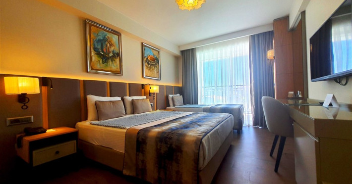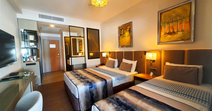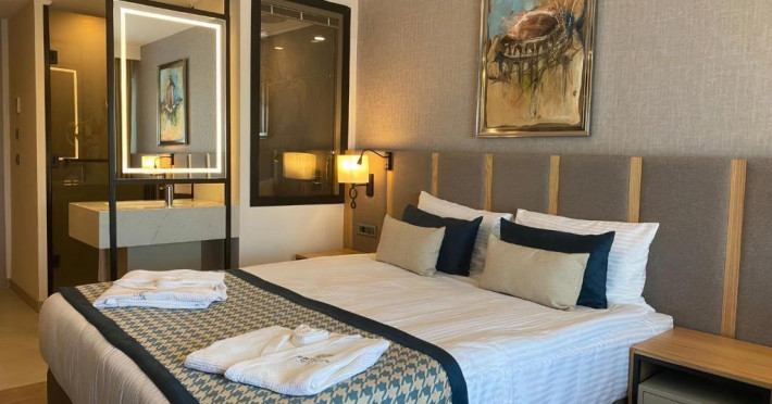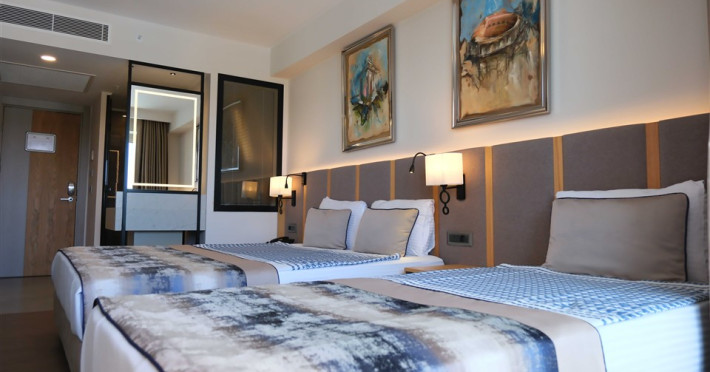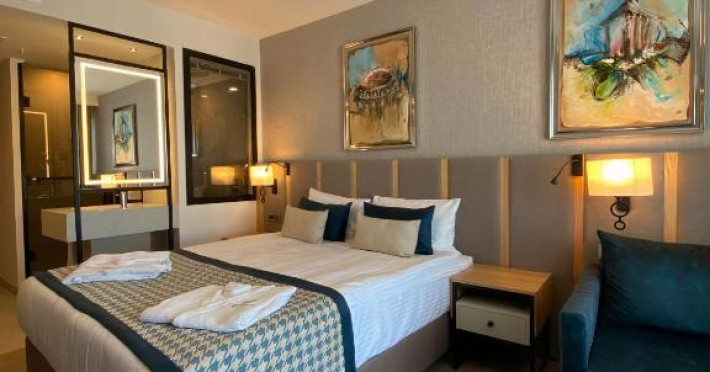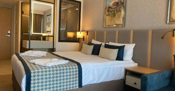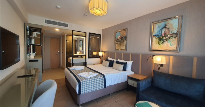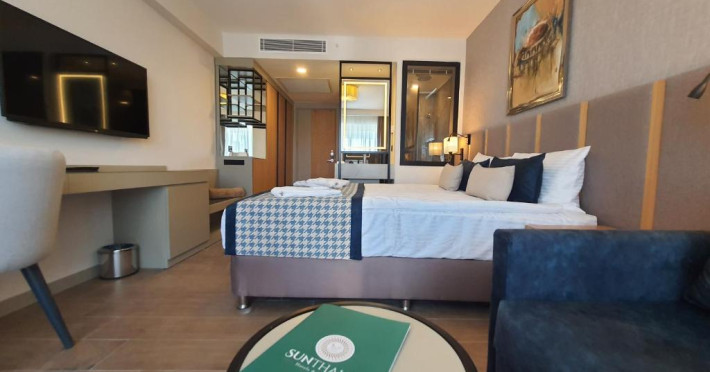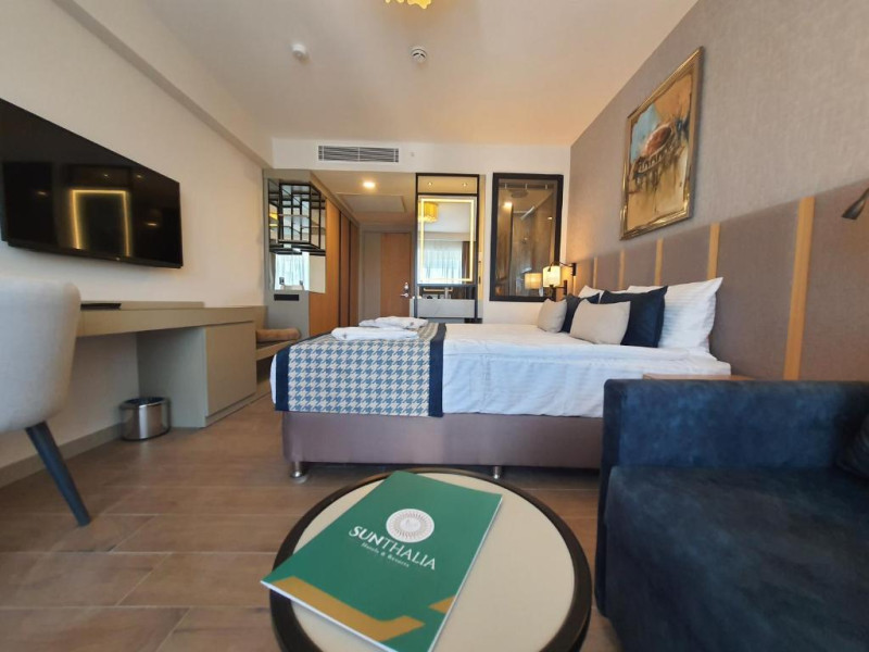 Acest hotel pune la dispoziție camere care includ aer condiționat, un birou, o cafetieră, un minibar, o cutie de valori, un televizor cu ecran plat, un balcon și o baie proprie cu bideu. Baia proprie oferă un duș, articole de toaletă gratuite și un uscător de păr. La Sunthalia Hotels & Resorts Ultra All Inclusive Adults Only Party Hotel, fiecare cameră oferă lenjerie de pat și prosoape.