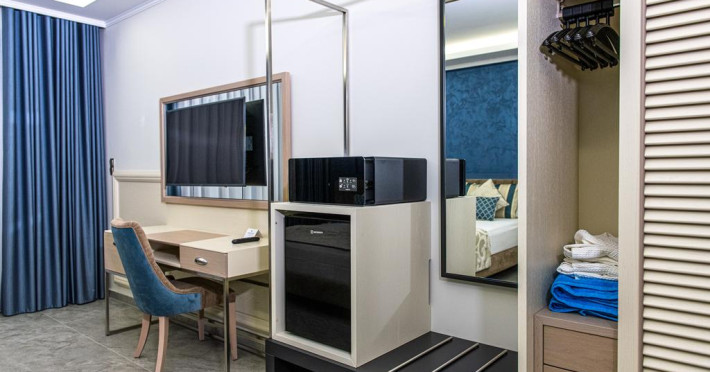 aer condiționat, seif (gratuit), TV prin satelit, televizor Smart, frigider, internet Wi-Fi gratuit, duș, uscător de păr, set de baie, halate de baie, balcon / terasă. Fier și masă de călcat (la cerere). Baby cot - gratuit.