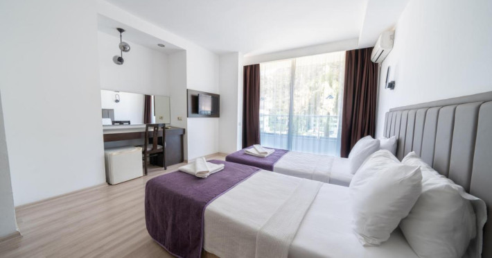Localizare: Hotelul se află in apropiere de Plaja din Icmeler si la o distanta de 49 km de Aeroportul Dalaman. Facilități hotel: piscină exterioară, acces imediat la plajă, camere de familie, WiFi gratuit inclus, transfer de la și/sau la aeroport, spa și centru de wellness, parcare gratuită, sală de fitness, bar, zonă de plajă privată. Dotări camere: balcon, vedere la grădină, aer condiționat, baie privată, TV cu ecran plat, terasă, Minibar. Servicii contra cost: serviciu de transfer, serviciu de curățătorie și călcătorie, snorkelling, scufundări, facilități sporturi nautice, pescuit, echipament tenis, biliard, masaj, sală fitness, spa și centru wellness, saună, jacuzzi. IMPORTANT: Descrierea hotelului se bazează pe detaliile disponibile la momentul pregătirii tarifelor pentru sezonul turistic ce urmează a se desfășura și are caracter pur informativ. Hotelul poate aduce modificări de structură, denumiri camere, tip servicii incluse/neincluse și altele, fără a notifica în prealabil. Pentru informațiile oficiale vă rugăm să consultați website-ul hotelului.Datorita dinamicitatii domeniului disponibilitatea ofertelor se modifica de la un moment la altul. De aceea ofertele sunt valabile in limita locurilor disponibile. Agentia nu este responsabila pentru eventualele neconcordante care pot aparea intre informatiile privind tarifele si alte detalii din site si informatiile primite in agentie. In aceste cazuri vor avea prioritate, intotdeauna, informatiile primite in agentie.