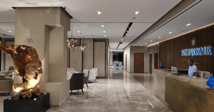 Supreme Hotel se află in Golem, la cațiva pași de Plaja Qerret, și pune la dispoziție o zonă in aer liber sezonieră, o grădină, un lounge comun și parcare privată gratuită. Printre facilități disponibile la această proprietate se numără un restaurant, o recepție deschisă nonstop și un serviciu de concierge, precum și WiFi gratuit in intreaga proprietate. Anumite unități de proprietate includ un balcon cu o vedere la mare.