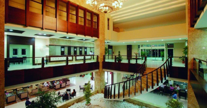 Facilitati hotel: Restaurant principal, doua restaurante a la carte (pescaresc, international, cu rezervare, o data pe saptamana - gratuit), sase baruri, meniuri dietetice, meniuri vegetariene, doua piscine exterioare, piscina acoperita,cinci tobogane de apa, cabinet medical, coafor, salon de frumusete, sala TV, centru comercial, spalatorie, schimb valutar, rent a car, parcare, doua sali de conferinte.
