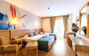 DOTARI CAMERE: Cele 8 cladiri, fiecare cu 4 nivele, gazduiesc 375 de camere standard (maxim 3 persoane, 27 m2) si 125 de camere family (2 dormitoare cu usi, maxim 4 persoane, 35 m2). Fiecare camera dispune de facilitati precum pat/WC, minibar (reumplut zilnic cu 1,5 litri apa de izvor), TV prin satelit, radio, aer conditionat, telefon direct, seif cu inchiriere, uscator de par, balcon si zona de relaxare.