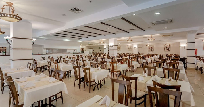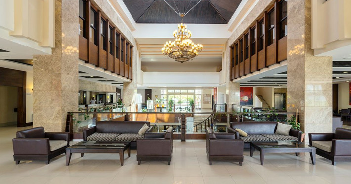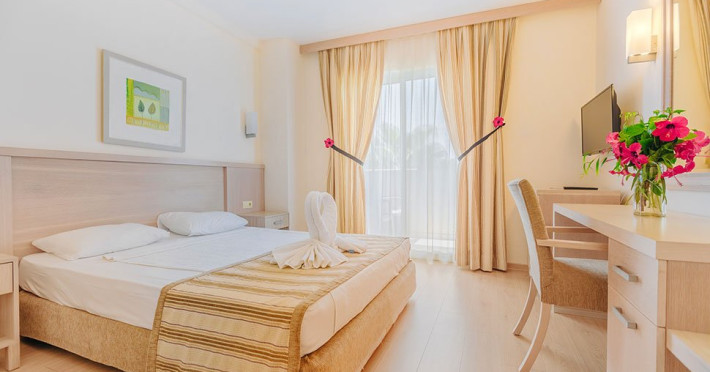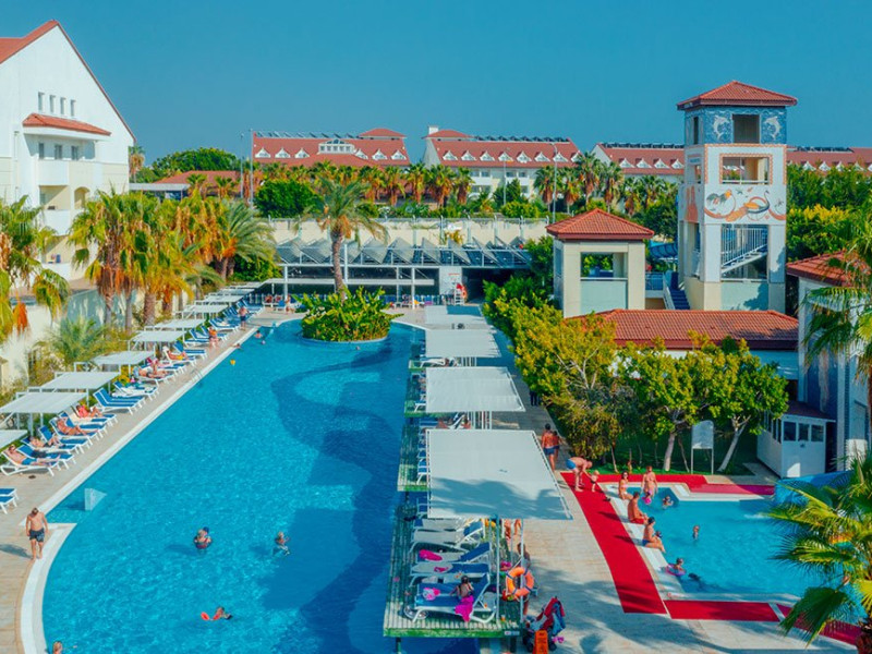 FACILITATI HOTEL: Hotelul impresioneaza si prin facilitatile sale variate, incluzand un restaurant principal, meniuri dietetice si vegetariene, 5 baruri, 2 piscine exterioare, piscina interioara si 5 tobogane acvatice pentru distractie in apa. Alte servicii disponibile includ cabinet medical, coafor, magazine, spalatorie si o sala de conferinte pentru 100 de persoane. Complexul dispune de trei terenuri de fotbal, iar accesul la internet WiFi este gratuit in zona de lobby.