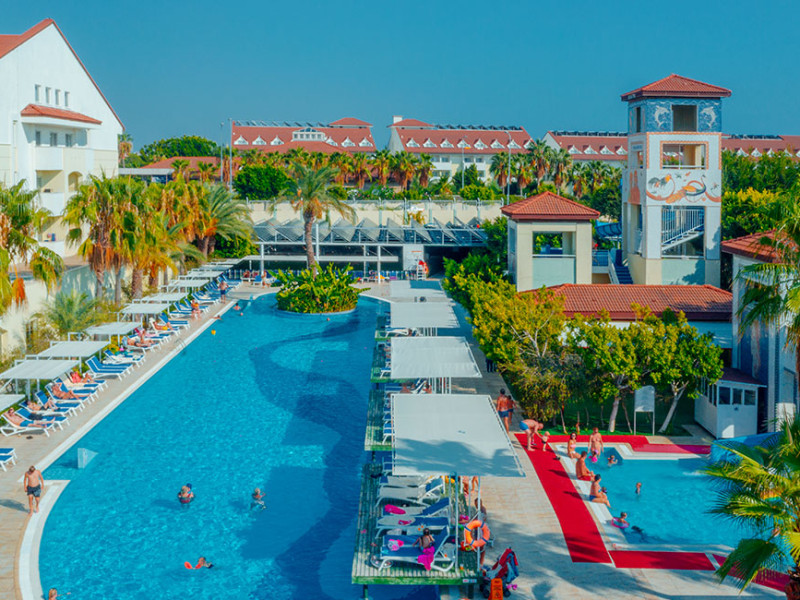 Acesta a fost construit in anul 2005 si se intinde pe o suprafata totala de 70 000 m2, ultima renovare a avut loc in anul 2016. Hotelul are opt cladiri cu patru nivele cu 375 standard room si 125 family room cu doua camere. Hotelul ofera oaspetilor un restaurant cu meniu dietetic, vegetarian, cinci baruri, doua piscine exterioare, cinci tobogane, medic, coafor, lanturi de magazine, spalatorie, sala de conferinte (100 pers.), trei terenuri de fotbal, internet WiFi in hol. Alte facilitati: baie turceasca, sauna, jacuzzi, sala de fitness, aerobic, aqua aerobic, volei pe plaja, baschet, 2 terenuri de tenis cu suprafata dura, tenis de masa, darts, animatie, muzica live. Plaja este privata cu nisip.La piscina si pe plaja: umbrele, sezlonguri si saltele sunt gratuite.