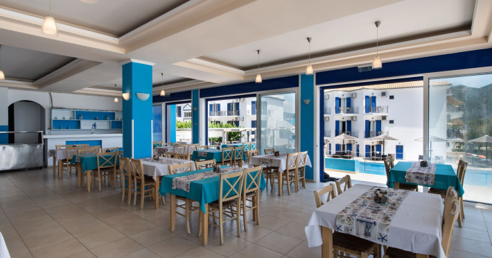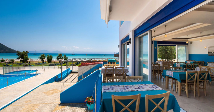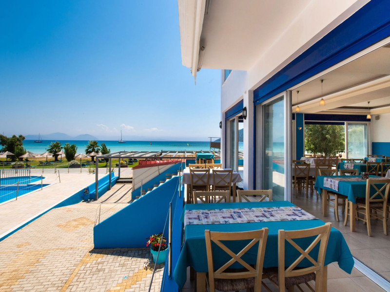 Enjoy your stay in our comfortable rooms and apartments, indulge in the delicious flavours of our restaurant, relax by the pool, pool bar, garden or on the beach sunbeds, enjoy an adrenaline boost by trying the watersports offered at our Surf School!