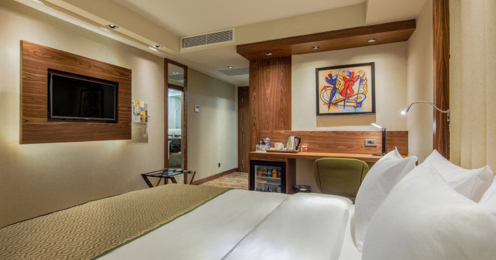 Suter Palace reprezinta un concept de ospitalitate contemporana de 5 stele plus gazduit intr-o cladire de patrimoniu istoric , imbinand astfel armonios trecutul cu prezentul si proiectand cu viziune viitorul . Suter Palace isi intampina oaspetii in 17 spatii decorate individual, fiecare cu atmosfera , cromatica , numele si designul sau special: 14 camere de lux si 3apartamente princiare , majoritatea cu privire spre pitorescul cartier aflat langa Parcul Carol si impresionanta cladire a Palatului Parlamentului . Un restaurant fine dining, o gradina interioara , o sala de evenimente , 2 sali de sedinte , o mica sala de sport ,o sala de masaj , o sauna si o capela completeaza facilitatile de care se pot bucura toti oaspetii aflati in cautarea unui loc unic s i discret , in care cele mai sofisticate experiente sunt natural oferite. Restaurantul hotelului poarta cu mandrie numele original al zonei istorice urbane Gramont . Este format dintr un un spatiu interior care mixeaza arhitectura specifica anilor 1900 cu elemente de tehnologie si de design actual, spatiu care continua cu o terasa exterioara cu influente arhitecturale brancovenesti , cu o scara monumentala si cu o panorama total suprinzatoare asupra Palatului Parlamentului. Versatilitatea Suter Palace este confirmata de numeroasele evenimente private, sociale sau corporate desfasurate in salile sale, de la aniversari si ceremonii , lalansari de produse exclusive, sedinte foto , intalniri de afaceri , filmari , prezentari sau dineuri . Sala de evenimente are o capacitate medie de 55 de persoane , si iesire directa spre gradina interioara , Sala Oglinzilor poate acomoda in amenajare Board Meeting sau Private Dinner intre 8 si 12 persoane , Tower Bar poate gazdui intalniri de 6 8 persoane. Restaurantul Gramont are 34 de locuri la mese iar Gradina Suter poate gazdui in acelasi timp in zona de luat masa si lounge putin peste 100 de personae. Gradina Suter se dezvaluie oaspetilor ca un spatiu care celebreaza natura intr un mod discret , dar profund , invitand la deconectare de la tumultul orasului , de la griji , de la tehnologie si reconectare la natura , la prieteni , la sine, la ceea ce este cu adevarat valoros pentru fiecare dintre noi.Datorita dinamicitatii domeniului disponibilitatea ofertelor se modifica de la un moment la altul. De aceea ofertele sunt valabile in limita locurilor disponibile. Agentia nu este responsabila pentru eventualele neconcordante care pot aparea intre informatiile privind tarifele si alte detalii din site si informatiile primite in agentie. In aceste cazuri vor avea prioritate, intotdeauna, informatiile primite in agentie.