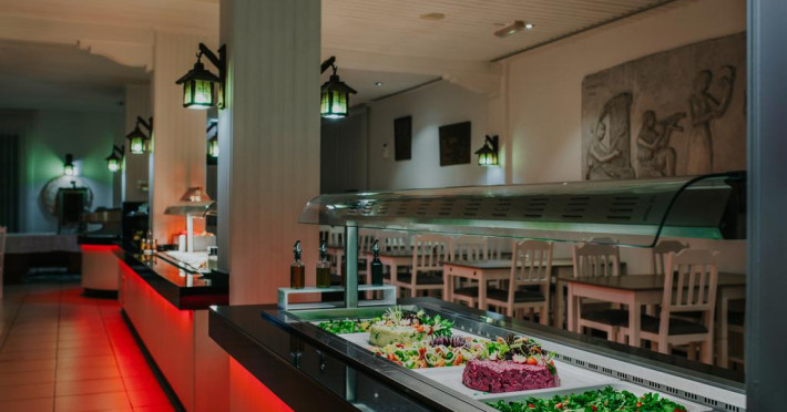 La Sveltos Hotel oaspeții au la dispoziție un restaurant care servește mâncare în stil bufet și à la carte. Preparate din bucătăria internațională așteaptă să fie degustate în fiecare zi la micul dejun, prânz și cină. Masa poate fi servită atât în interior, cît si în aer liber, pe terasă, în funcție de vreme. Oaspeţii pot avea diverse băuturi răcoritoare sau alcoolice la bar. În cadrul proprietății există și un snack bar care servește băuturi și gustări. Pentru cei cu anumite nevoi de nutriție, Sveltos Hotel oferă meniuri pentru diete speciale.