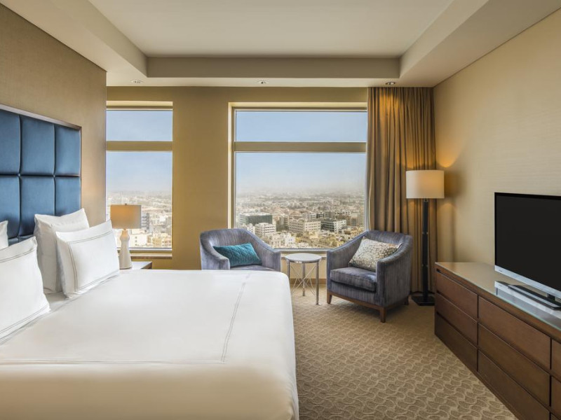 Unele camere au vedere la oraș. Camerele confortabile de la Swissotel Living Al Ghurair au pardoseală de gresie/ marmură, aer condiționat, Tv cu canale prin satelit și seif. În camere există baie cu cadă sau duș ce are în dotare foehn și articole de toaletă gratuite. Fiecare cameră dispune de minibar și cană-fierbător. Oaspeții pot solicita serviciul de room service pentru a servi masa sau diverse băuturi. Oaspeții au acces gratuit la serviciul Wi-fi în camere. Curățenia in cameră se face zilnic. Toate camerele spațioase de la Swissotel Living Al Ghurair au zonă de relaxare cu canapea, ceea ce oferă un plus de confort. Proprietatea oferă camere pentru familie cu o suprafață mai mare și un număr mai mare de paturi față de cele standard. Se pot rezerva de asemenea camere pentru nefumători.