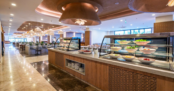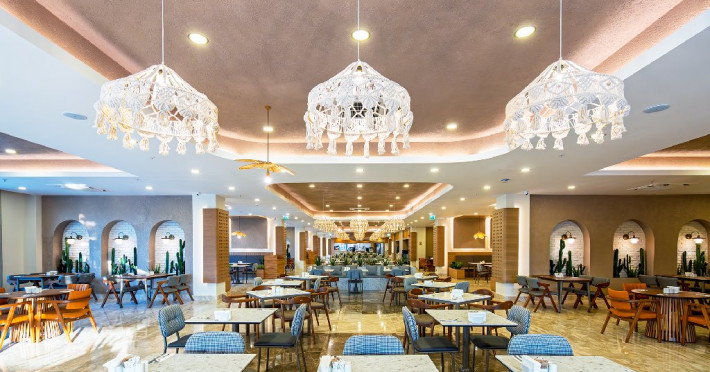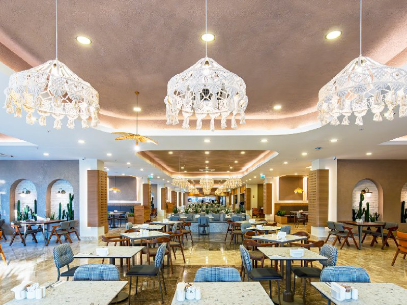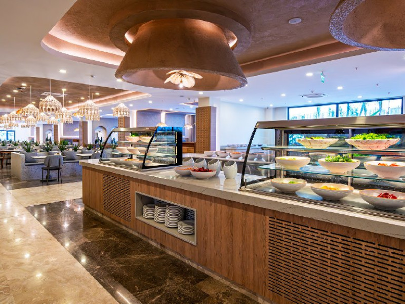 Hotelul ofera piscine exterioare si interioare, spa, sala de fitness, restaurant bufet, restaurant la plaja, restaurante a la carte, snack bar, patiserie, mai multe baruri inclusiv la piscina si la plaja, shuttle catre plaja, animatie zilnica, mini club, plaja privata cu sezlonguri si umbrele, Wi-Fi gratuit, animatie si spectacole, tenis de masa, darts, volei pe plaja, aerobic.
