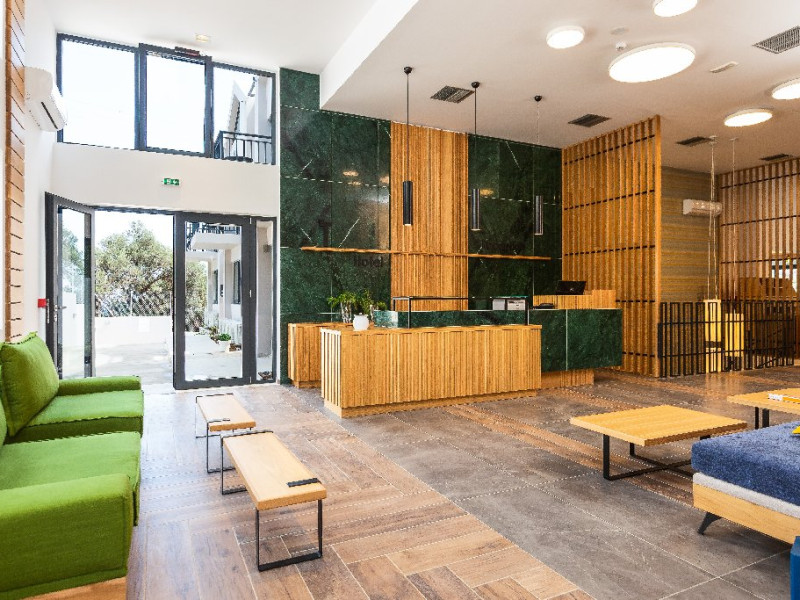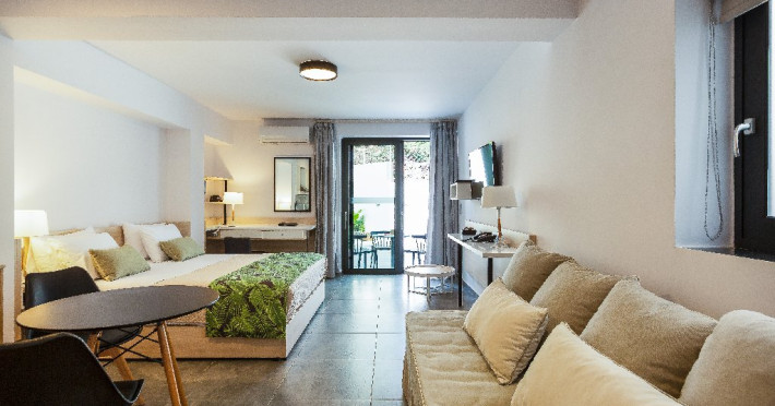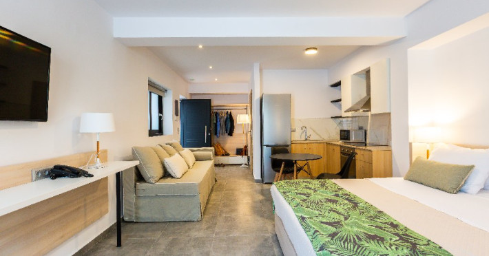 Dotari camere: Hotelul are 18 apartamente de aproximativ 68 mp alcatuite din 2 dormitoare separate si 1 living room (1 pat dublu, 2 paturi single si 1 canapea extensibila). Apartamentele sunt dotate cu aer conditionat (gratuit), acces internet WiFi (gratuit), telefon, seif (gratuit), televizor, DVD player, mini bucatarie (plita, vesela, cafetiera, fierbator de apa, toaster), frigider, uscator de par, halate si papuci de baie, pachet de bun venit (vin, apa si fructe).