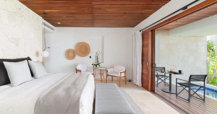 Rooms at TagoTulum include a minibar and TV with satellite channels. Coffee-making facilities are provided and a private bathroom features a double shower, hairdryer, and free toiletries. Rooms boast garden or sea views with a private pool.