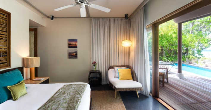 Acest complex luxos se află pe insula Hembadhu, langă o lagună cu recif de corali. Oferă vile elegante cu vedere panoramică la ocean sau la plajă. De asemenea, oferă piscină frumoasă in aer liber, precum si tratamente spa relaxante. Există WiFi gratuit. Vilele de la Vivanta sunt spatioase si elegante și oferă TV cu ecran plat de 32 inch cu sistem home theater si iPod docking station. Fiecare include minibar cu produse alimentare organice si băuturi. Vivanta By Taj - Coral Reef are scoală de scufundări si centru de fitness. Oaspetii se pot bucura de activităti acvatice precum snorkelling sau hrănirea pestilor și pot plănui excursii de vizitare a mai multor insule. Latitude, restaurantul de la Vivanta Coral Reef oferă preparate din toată Asia, iar Open - The Grill oferă mancăruri populare din bucătăriile italiană si japoneză. Oaspetii pot savura masa si in vilă, intr-o atmosferă romantică. Proprietatea este la 32 km (45 de minute de mers cu barca cu motor) de orașul Malé.