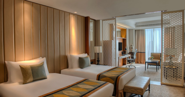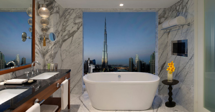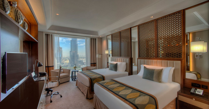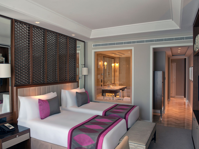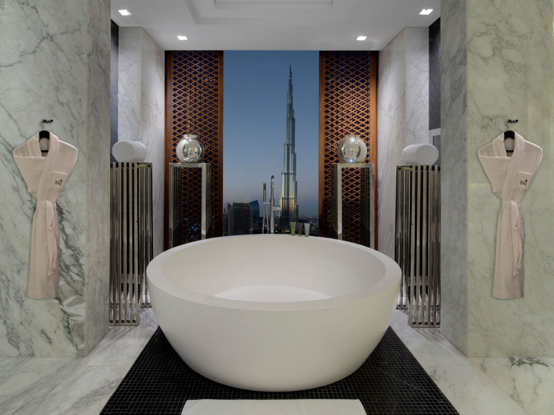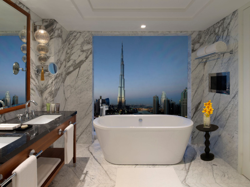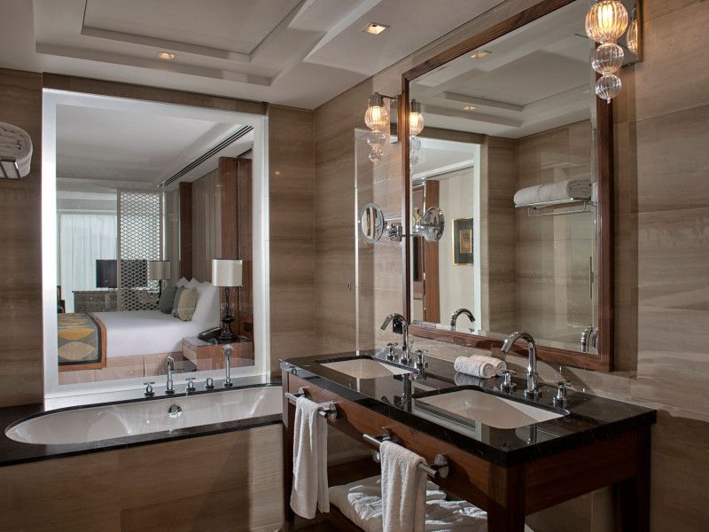 Featuring panoramic views of Burj Khalifa, the luxurious Indian themed Taj Dubai is situated in the heart of the business bay area just a stone’s throw away from the Dubai’s famed Downtown area and Dubai Mall, that can easily be reached with the free shuttle bus that the hotel operates. It includes an outdoor pool, a spa and wellness centre. Guests can enjoy free WiFi access in all areas of the hotel.Taj Dubai offers modern and luxurious accommodation. Each room here will provide you with air conditioning, a minibar and a seating area with a flat-screen TV. Featuring a shower, the marble bathroom also comes with a bath and 2 sinks.Inspired by Dubai’s cultural and culinary diversity, Taj Dubai offers an array of authentic and innovative culinary experiences across its award-winning dining outlets, featuring Asian street food fusion at Miss Tess, British classics with a contemporary twist at The Eloquent Elephant, funky Mediterr-Asian blend at Treehouse , eclectic blend of classic and contemporary Indian cuisine at the signature Bombay Brasserie and Meda tapas + bar celebrates the iconic Mediterranean vibe combining the best of the East and West.Guests can keep fit in the hotels state of the art fitness centre or the outdoor swimming pool. J Wellness Circle offers a nurturing retreat after a hectic day in the city.The hotel is a 10-minute drive from Mall of the Emirates and a 20 minutes away by car from Dubai Marina. Dubai International Airport is 16.5 km away and Al Maktoum International Airport is 50 km from the property. It is also very well placed within a 10 minute drive from Dubai’s Financial Centre. The property offers free valet parking. Business bay Metro Station and Burj Khalifa Metro station are both within a km from the property.Property Location