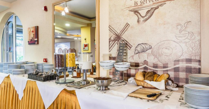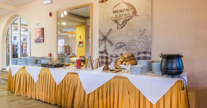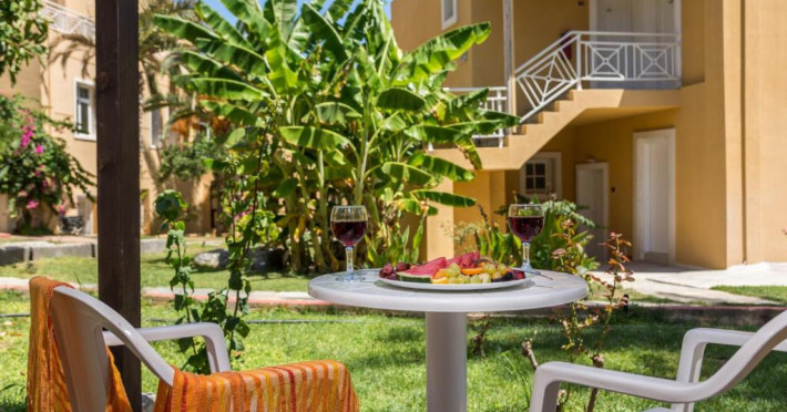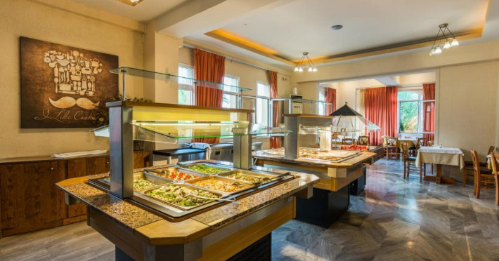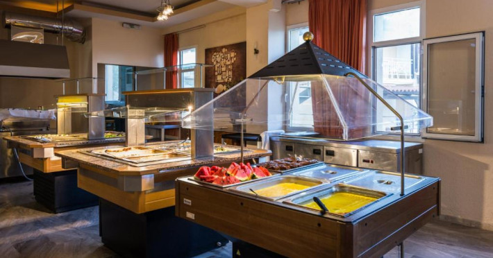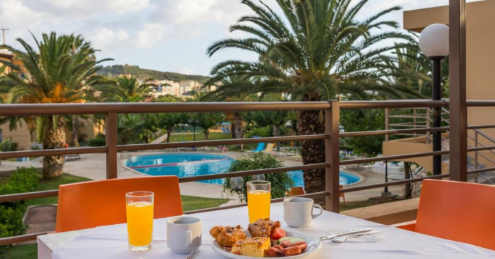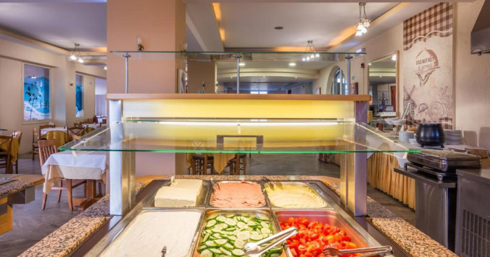 Oaspeții iși pot incepe ziua cu un mic dejun tip bufet. La restaurantul proprietății sunt servite mancăruri grecești imbogățite cu arome locale. Băuturi răcoritoare și gustări pot fi comandate de la bar. Oaspeții mai tineri au la dispoziție un loc de joacă și o piscină pentru copii. Pentru cei care doresc să se antreneze, există un centru de fitness in incintă. La cerere, pot fi aranjate tratamente de masaj.