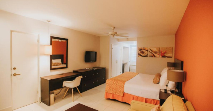 Acest hotel din Aruba oferă camere cu cuptor cu microunde și frigider. Hotelul se află la 1,6 km de Aeroportul Internațional Regina Beatrix și oferă piscină in aer liber și Wi-Fi gratuit in zonele publice. Toate camerele de la Talk of the Town Beach Club au TV prin cablu și baie privată. Camerele au un decor tropical și ferestre mari. Oaspeții de la Talk of the Town pot să ia masa la restaurantul de la piscină, care este deschis pe tot parcursul zilei sau să ia o băutură la barul din hol. Hotelul se află la mai puțin de 10 minute pe jos de Oranjestad, unde se găsesc magazine și restaurante. Hotelul este la mai puțin de 10 minute cu mașina de Marea Caraibelor.